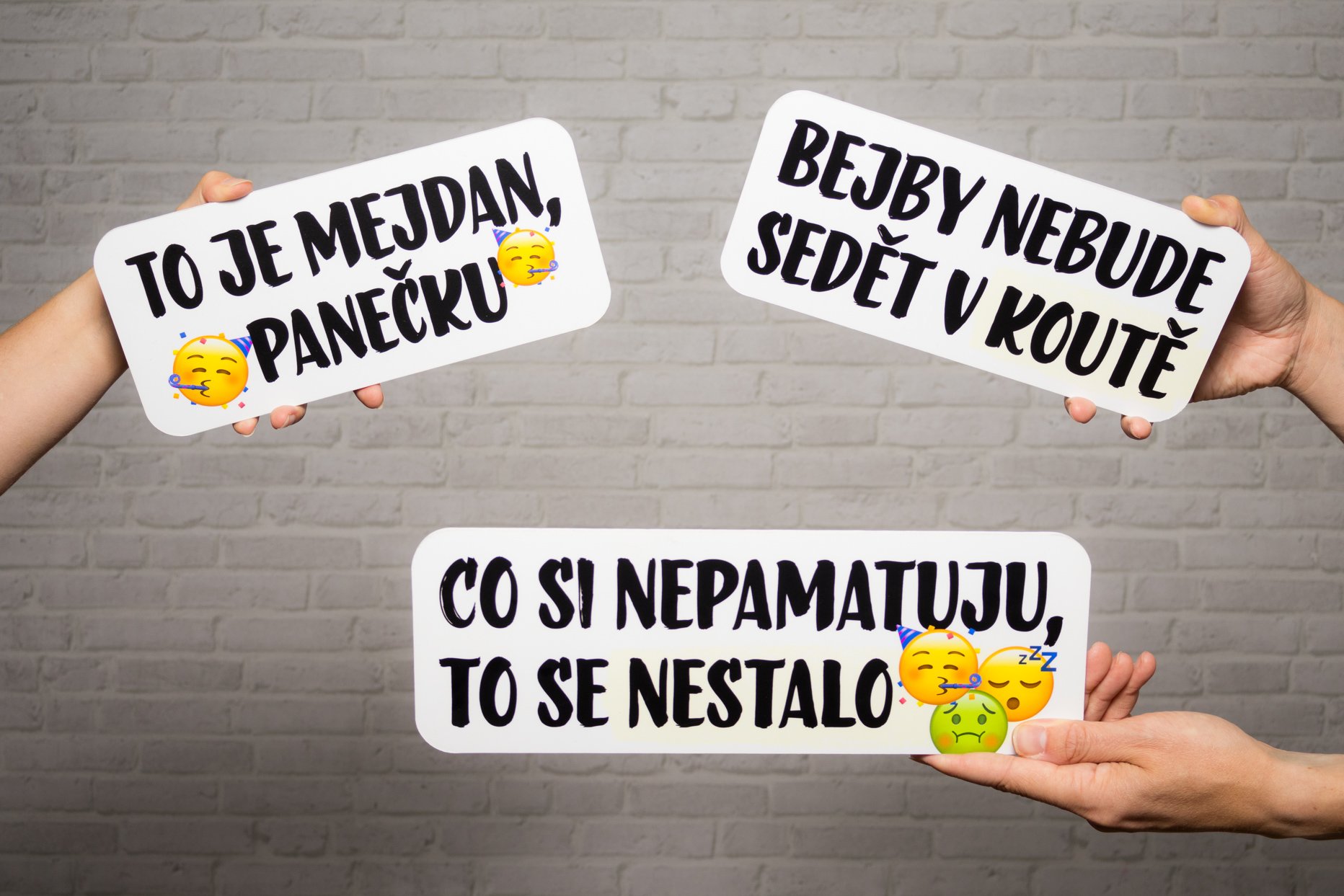 Nevadí, můžeme vám vyrobit rekvizity na zakázku - ať už tištěné na pevné PVC desce, nebo šité, které necháváme šít u švadlen v České republice.
